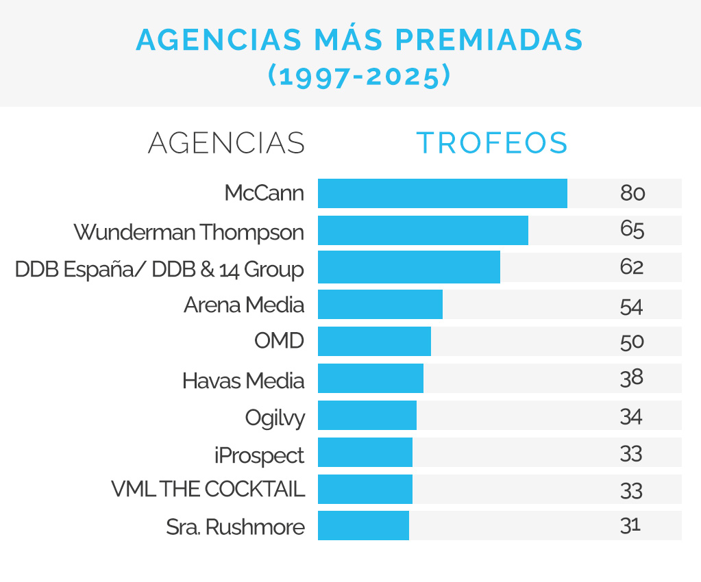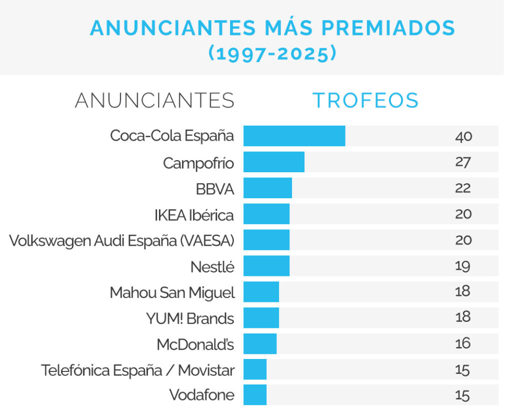 PALMARÉSLos Premios a la Eficacia, impulsados por la Asociación Española de Anunciantes y con la asesoría estratégica de SCOPEN, son los únicos galardones en España que se centran en resultados conseguidos gracias a la acción de comunicación ya sea notoriedad, ventas u otro tipo de rentabilidad que responda a un objetivo marcado previamente.