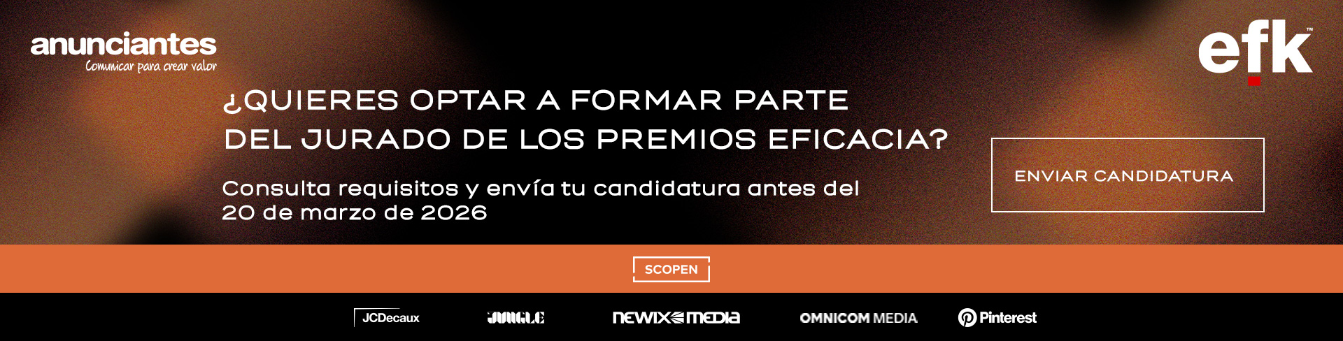 PALMARÉSLos Premios a la Eficacia, impulsados por la Asociación Española de Anunciantes y con la asesoría estratégica de SCOPEN, son los únicos galardones en España que se centran en resultados conseguidos gracias a la acción de comunicación ya sea notoriedad, ventas u otro tipo de rentabilidad que responda a un objetivo marcado previamente.